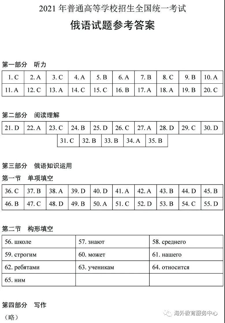 2021俄语高考全国统一考试试题及答案