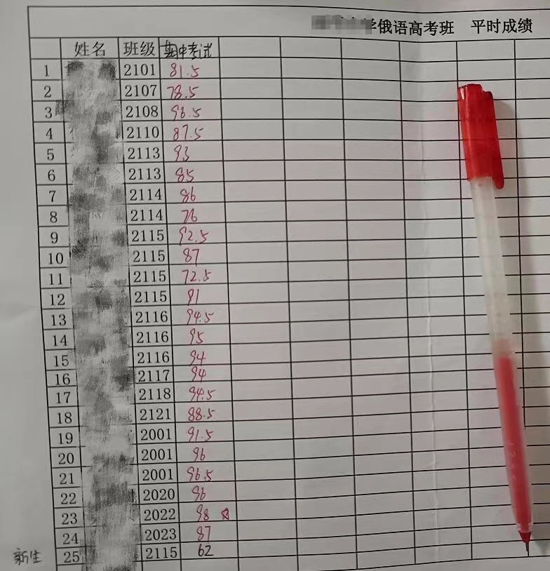 上周,俄语高考班举行了第一次期中测试。学习俄语不到2个月的时间,一百分的试卷,84%的学生取得了80分以上的优秀分数,90分以上的14人,80分以上的7人,70分以上的3人,就连刚进入俄语班才一周的同学也拿到了62分的及格分。