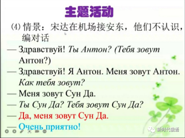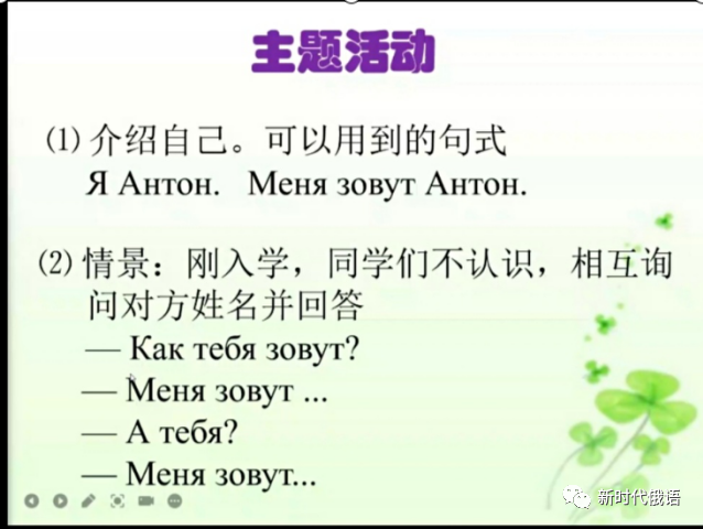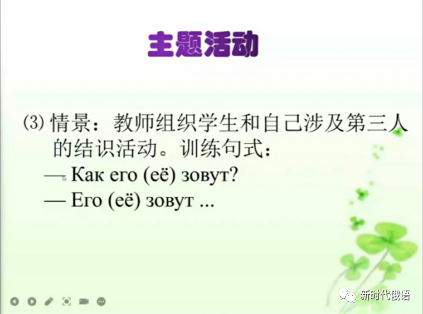 随着新教材和新课标的逐渐实施,教学的重点从注重语言知识转移到注重学生技能和综合能力的考查上来,这一点在高考新题型上体现的尤其明显。新的试题结构较之前试题而言有所调整,如;基础语法题量相对减少,阅读量比重增加,笔头表达能力的测试力度加大。而这些绝不是单纯靠机械记忆就能应付得了的,高分必须建立在扎实的语言知识与能力的日积月累上。所以大家在平常上课时可以多通过“活动教学法”、“情景教学法”等来培养学生的这一能力。“一带一路”俄语培训教学中,吴艳梅老师曾就“活动教学法”给我们进行了精彩的讲解和示范,有兴趣的老师可以回放学习,我这里仅给大家放一些我截屏的片段: