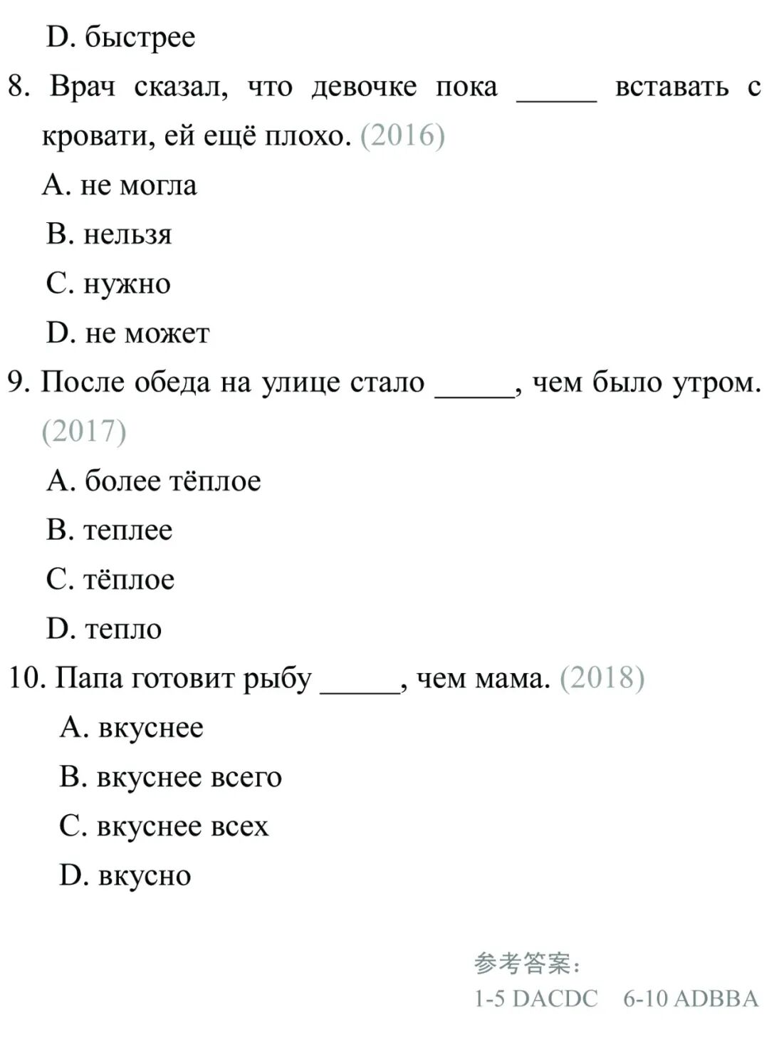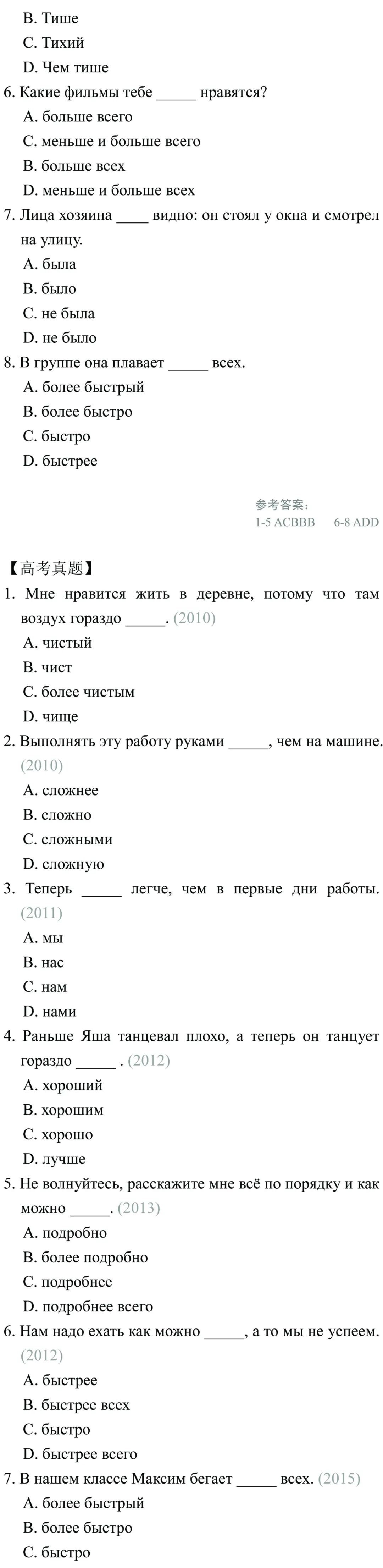 研究2010年到2020年这11年的高考试题,我们不难看出,副词当中考查最多的内容就是谓语副词部分,其次是副词的比较级别和最高级部分。