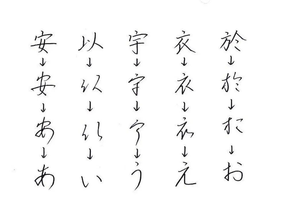 ▲假名的演变 图片来自:一番日语