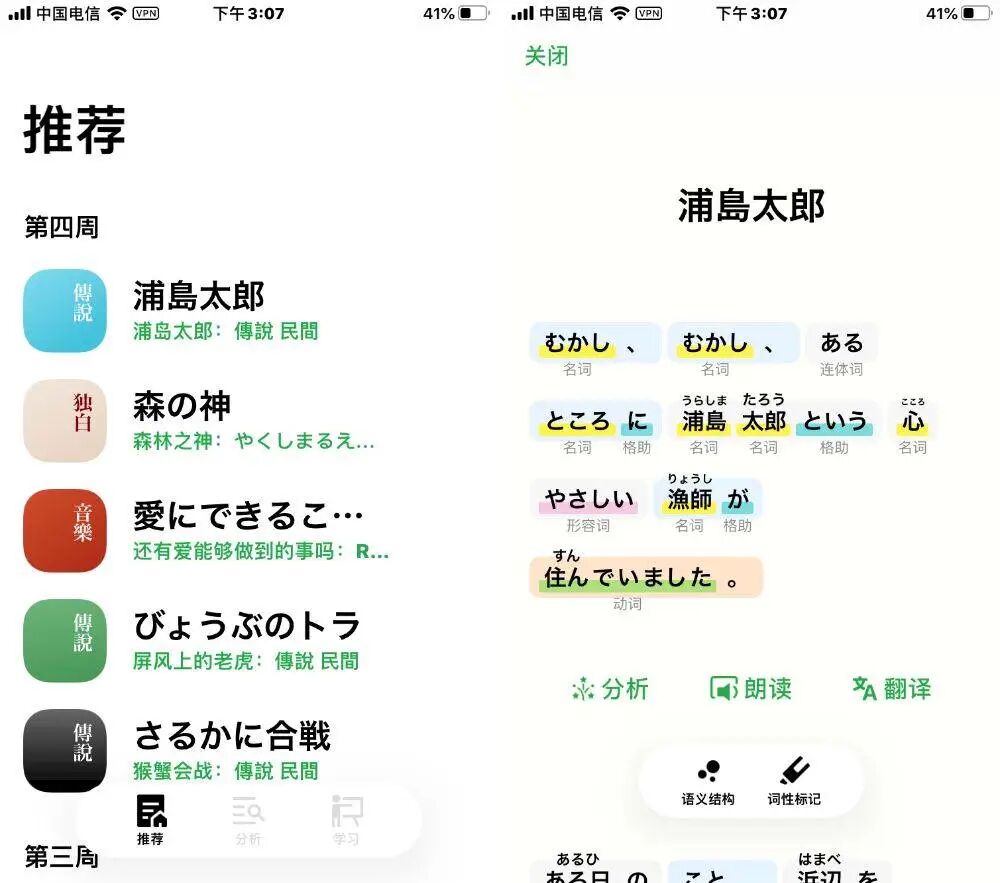 当然,50 音学习只是日语学习的第一步,词汇的积累和句型的掌握才是关键。《捧读》是一款用于词性标记、语义分析的工具,帮你在日语学习的道路上更进一步。